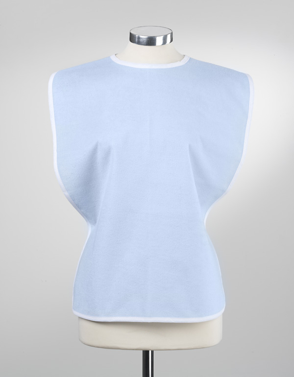 Bedingt durch die optimale Größe schützt KLECK-EX die Kleidung vollständig im Sitzen und im Liegen und erweiset sich somit als dankbarer Helfer bei den Mahlzeiten, da flüssigkeitsundurchlässig.